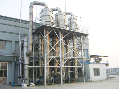 根據(jù)物料的特性及蒸發(fā)量的大小,可設計成單效或多效蒸發(fā)機組。